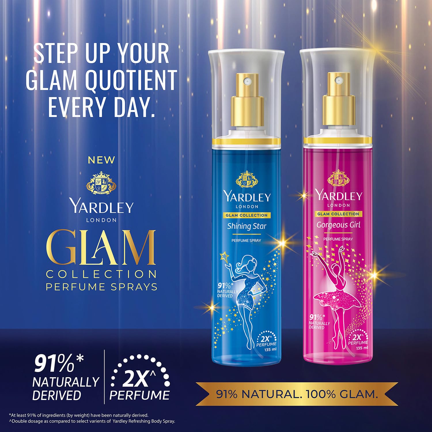 From dazzling nights to radiant days Yardley London Glam Collection is a mélange of alluring fragrances carefully crafted for the glamourous you! Step Up The Glam with Shining Star - an alluring fragrance that opens with fresh Lemon and Peach. At its heart it has the exquisite Neroli Magnolia and Rose. The sweetness of Vanilla at the base lingers on lasting as long as your radiance.