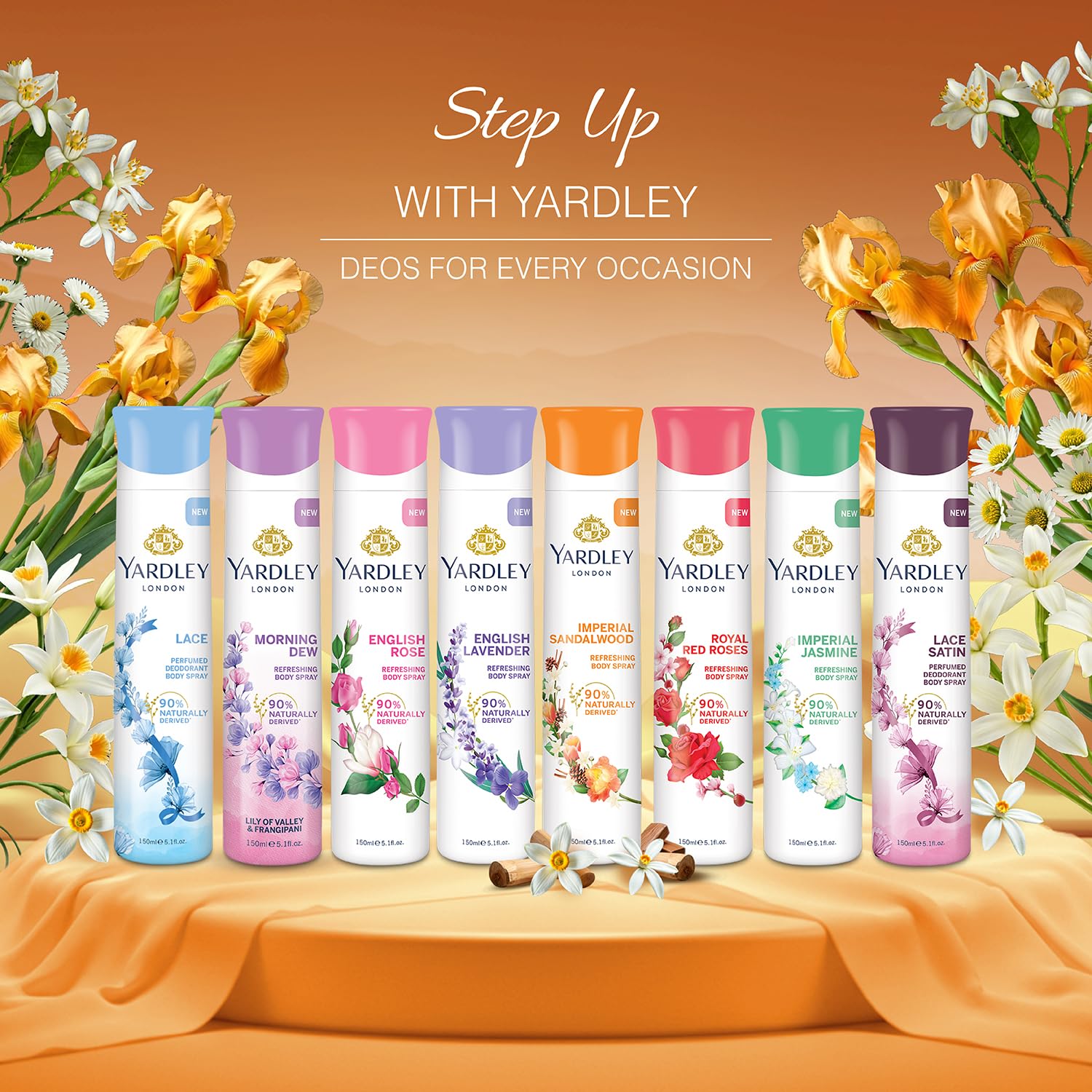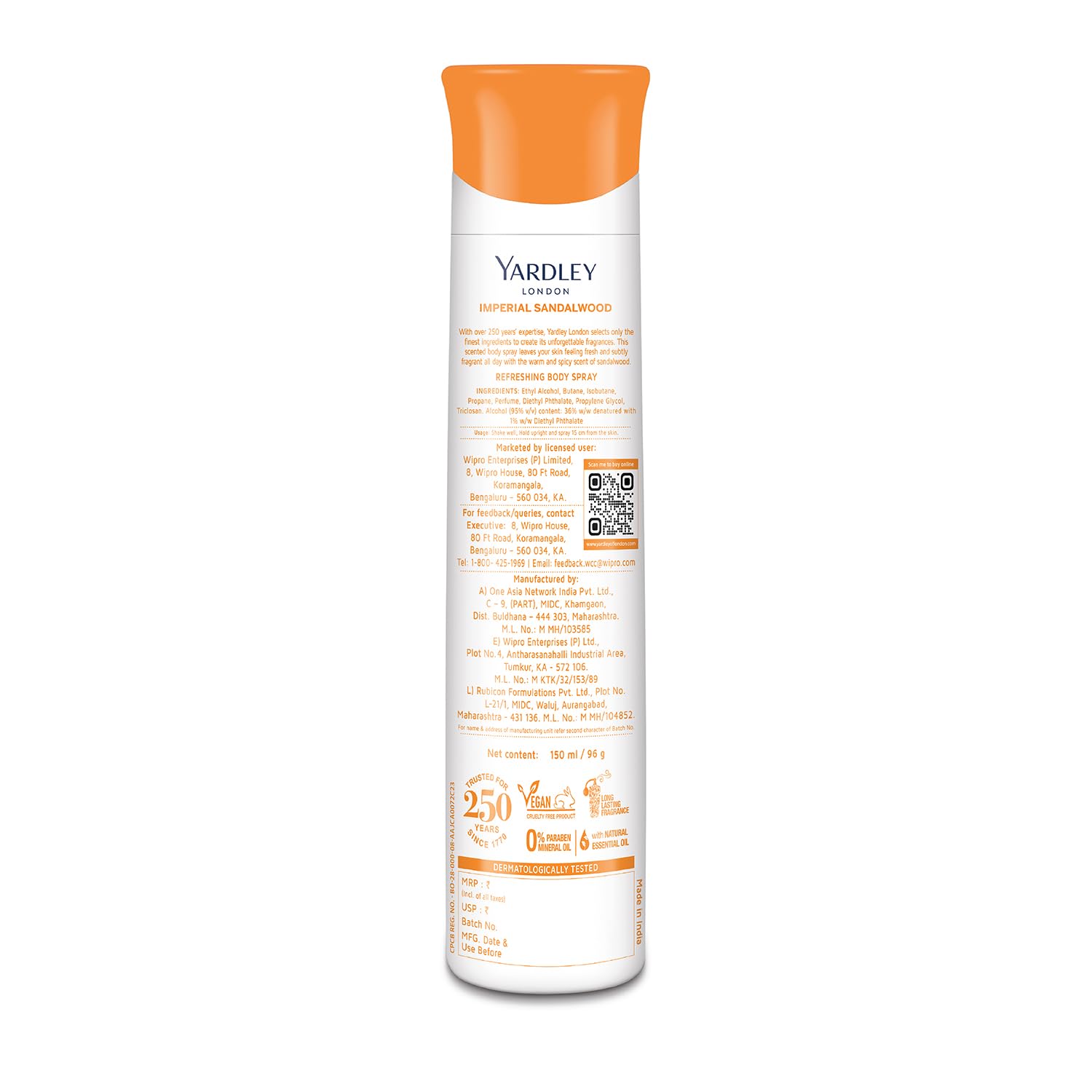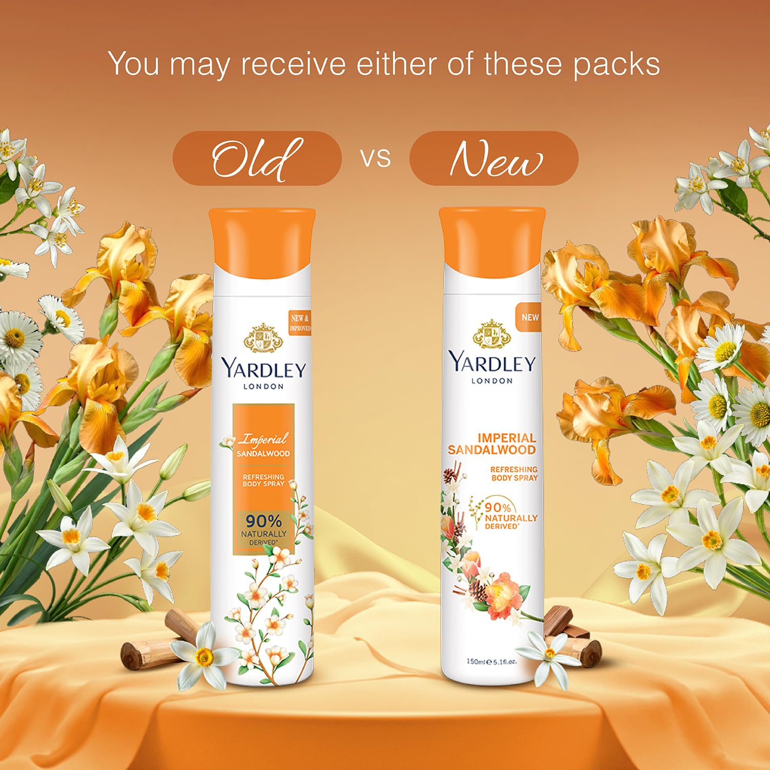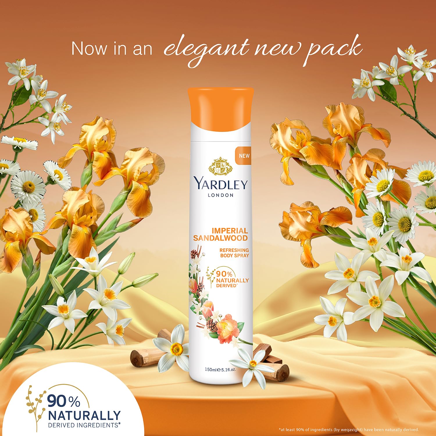 Unveil the natural charisma of Sandalwood with Yardley London's Imperial Sandalwood Perfumed Deo for Women. This fragrance is a sophisticated composition that artfully combines fresh invigorating scents with a woody floral heart. Blended with notes of Rose and a warm spicy base it creates an intoxicating aroma that's perfect for those who appreciate timeless elegance. Imperial Sandalwood Deo is a sensory experience pampering your senses with the warm and spicy embrace of Sandalwood. It's a fragrance that lingers leaving you feeling confident and alluring throughout the day. Crafted by The House of Yardley known for its classic and premium floral fragrances Imperial Sandalwood reflects English luxury at its finest. With a legacy spanning over 250 years Yardley London stands as one of England's most established purveyors of quality perfumes and soaps. Indulge in the essence of sophistication and luxury with Imperial Sandalwood Perfumed Deo. Elevate your everyday routine with this captivating scent that embodies the quintessential English fragrance.
