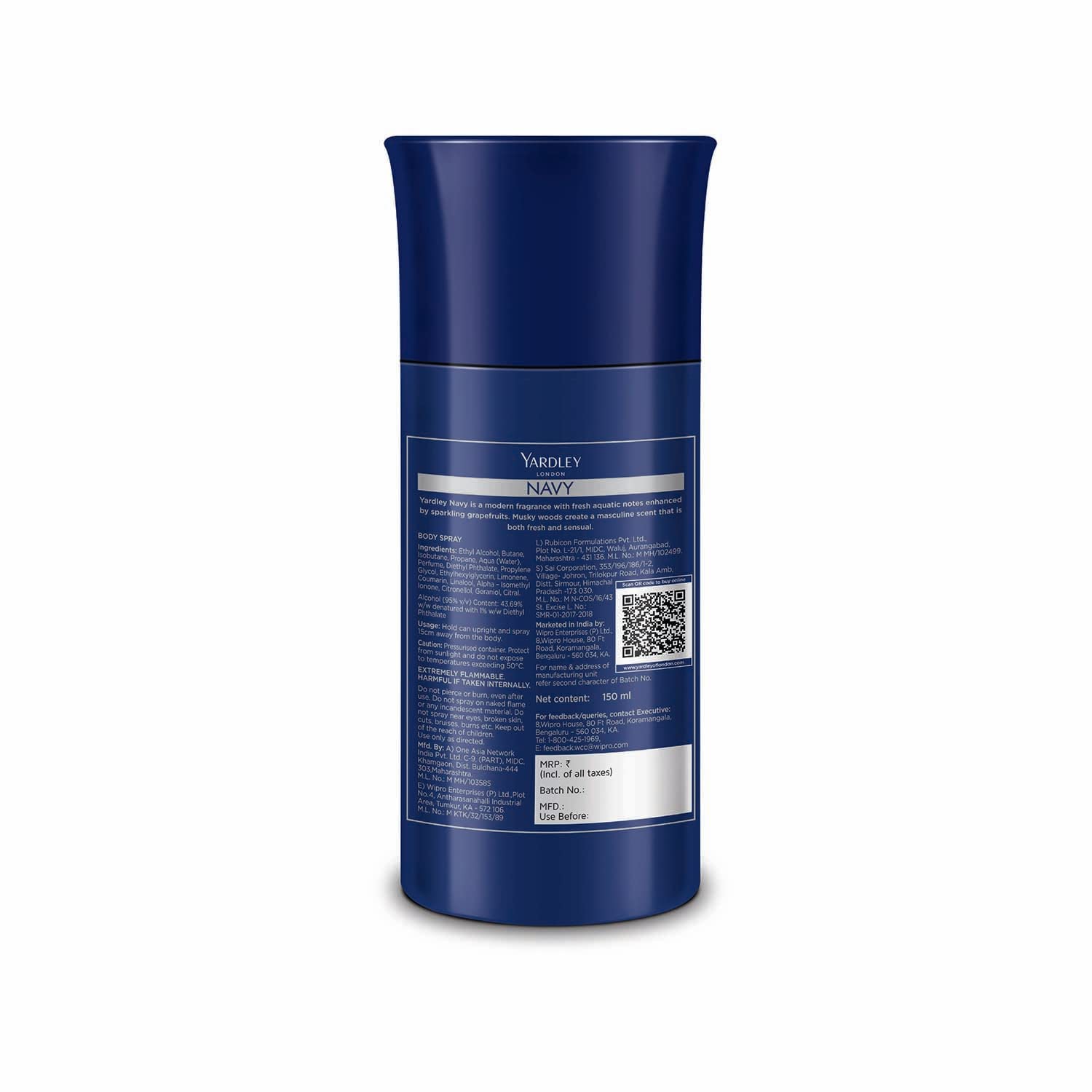 Introducing Yardley Navy Deodorant for men- it is a modern fragrance with fresh aquatic notes enhanced by grapefruits. Musky woods create a masculine scent that is both fresh and sensual