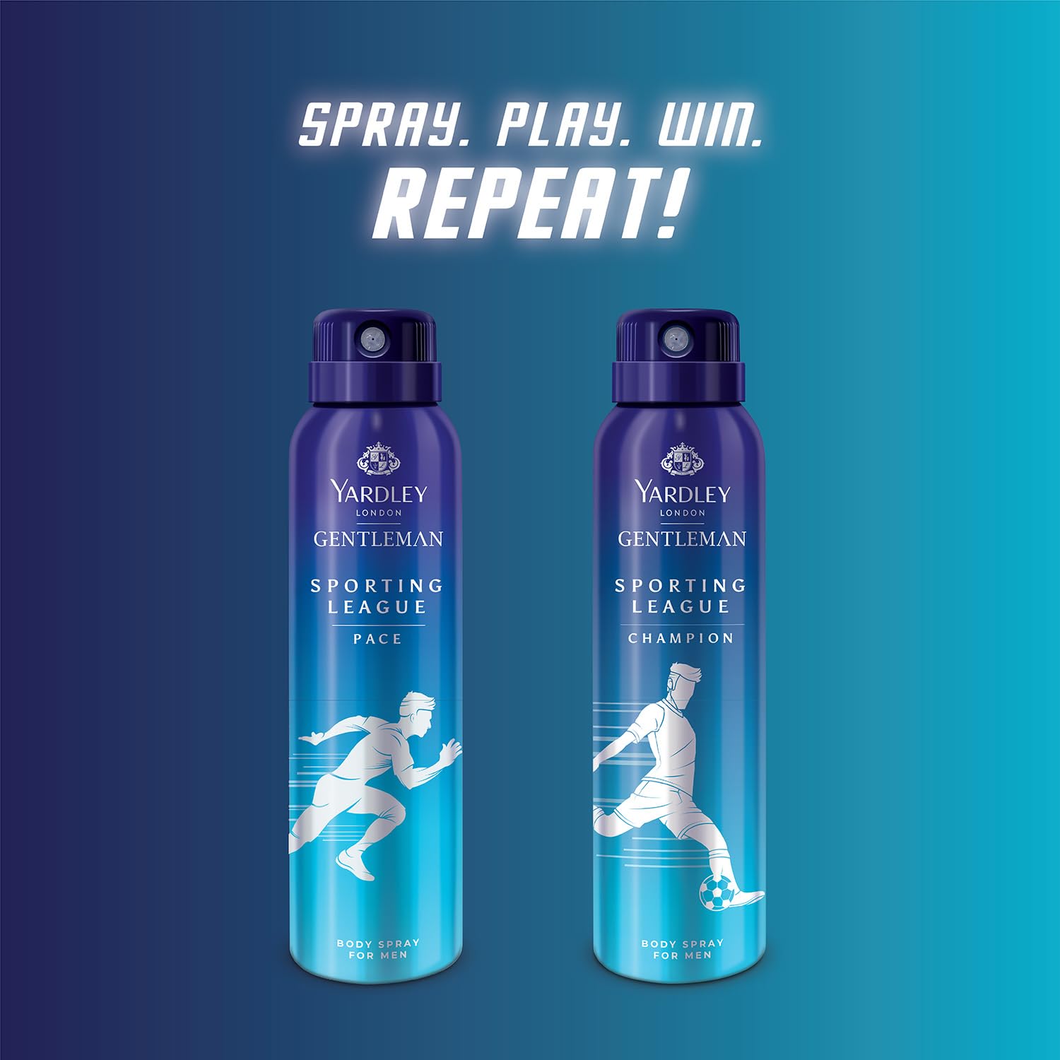 Introducing the Sporting League Range of deodorants from Yardley Gentleman - the ultimate choice for all your sporting needs. Champion is a winner mix of woody & aromatic fragrances which will enhance your energy levels. So you'll be ready to take on any challenge and emerge victorious every time