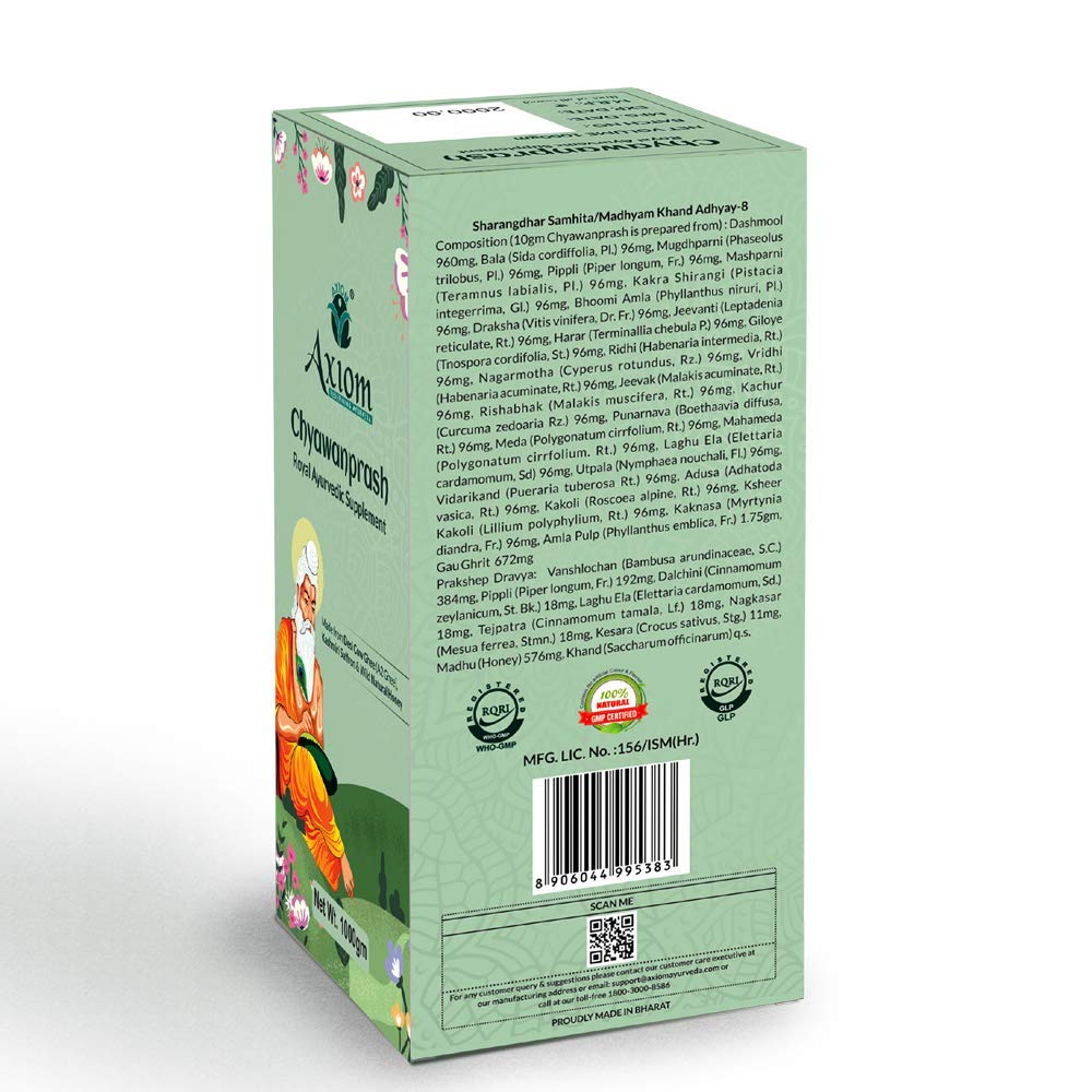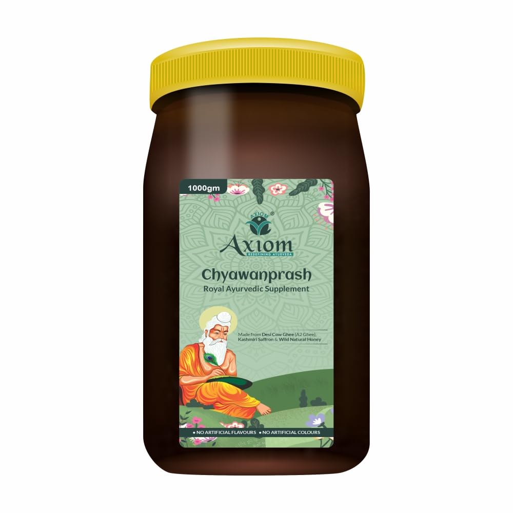 HomeHealth & PersonalDiet & NutritionChyawanprashAxiom Royal Ayurvedic Chyawanprash - 1Kg | Enriched with Desi Ghee (A2 Ghee) Kashmiri Saffron with 40+ Ayurvedic Herbs | For all Seasons & Age Groups | Helps Build Strength & Stamina Health