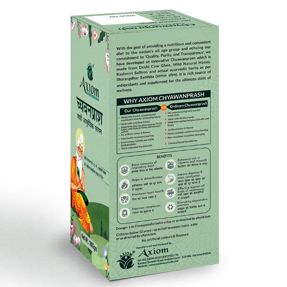 Axiom Royal Ayurvedic Chyawanprash - 1Kg | Enriched with Desi Ghee (A2 Ghee) Kashmiri Saffron with 40+ Ayurvedic Herbs | For all Seasons & Age Groups | Helps Build Strength & Stamina Health