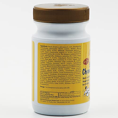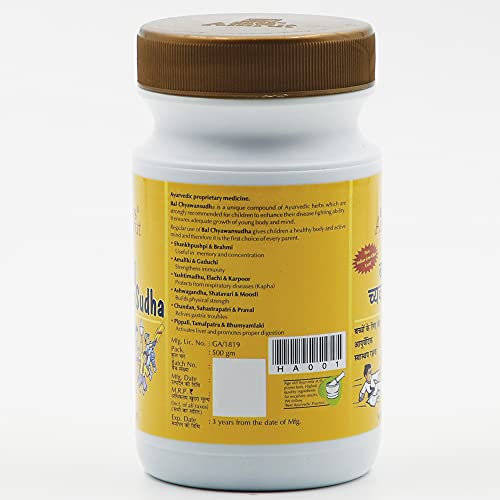 Bal Chyawansudha is a unique compound of Ayurvedic herbs which are strongly recommended for children to enhance their disease fighting ability. It ensures adequate growth of young body and mind. Regular use of Bal Chyawansudha gives children a healthy body and active mind and therefore it is the first choice of every parent. Shankhpushpi & Brahmi Useful in memory and concentration Amallki & Gaduchi Strengthens immunity Yashtimadhu Elachi & Karpoor Protects from respiratory diseases (Kapha) Ashwagandha Shatavari & Moosli Builds physical strength Chandan Sahastrapatri & Praval Relives gastric troubles Pippali Tamalpatra & Bhumyamlaki Activates liver and promotes proper digestion