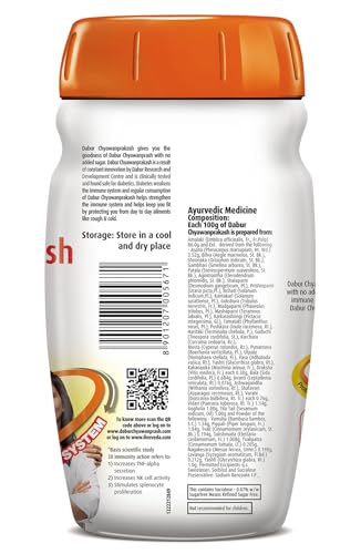 Diabetes can weaken your immune system which increases the chances of catching infections. Dabur Chyawanprakash has been specially curated to meet the immunity needs of diabetics and people looking for sugar free solutions to boost their immunity. A result of constant innovation by Dabur Research and Development Center Dabur Chyawanprakash has been clinically tested and found to be safe for Diabetics. Dabur Chyawanprakash has been made from more than 40 Ayurvedic Herbs like Amla Ashwagandha Giloy etc. to give you the goodness of Dabur Chyawanprash with no added sugar. Regular consumption of Dabur Chyawanprakash helps strengthen the immune system and helps keep you fit by protecting you from day to day ailments like cough & cold.