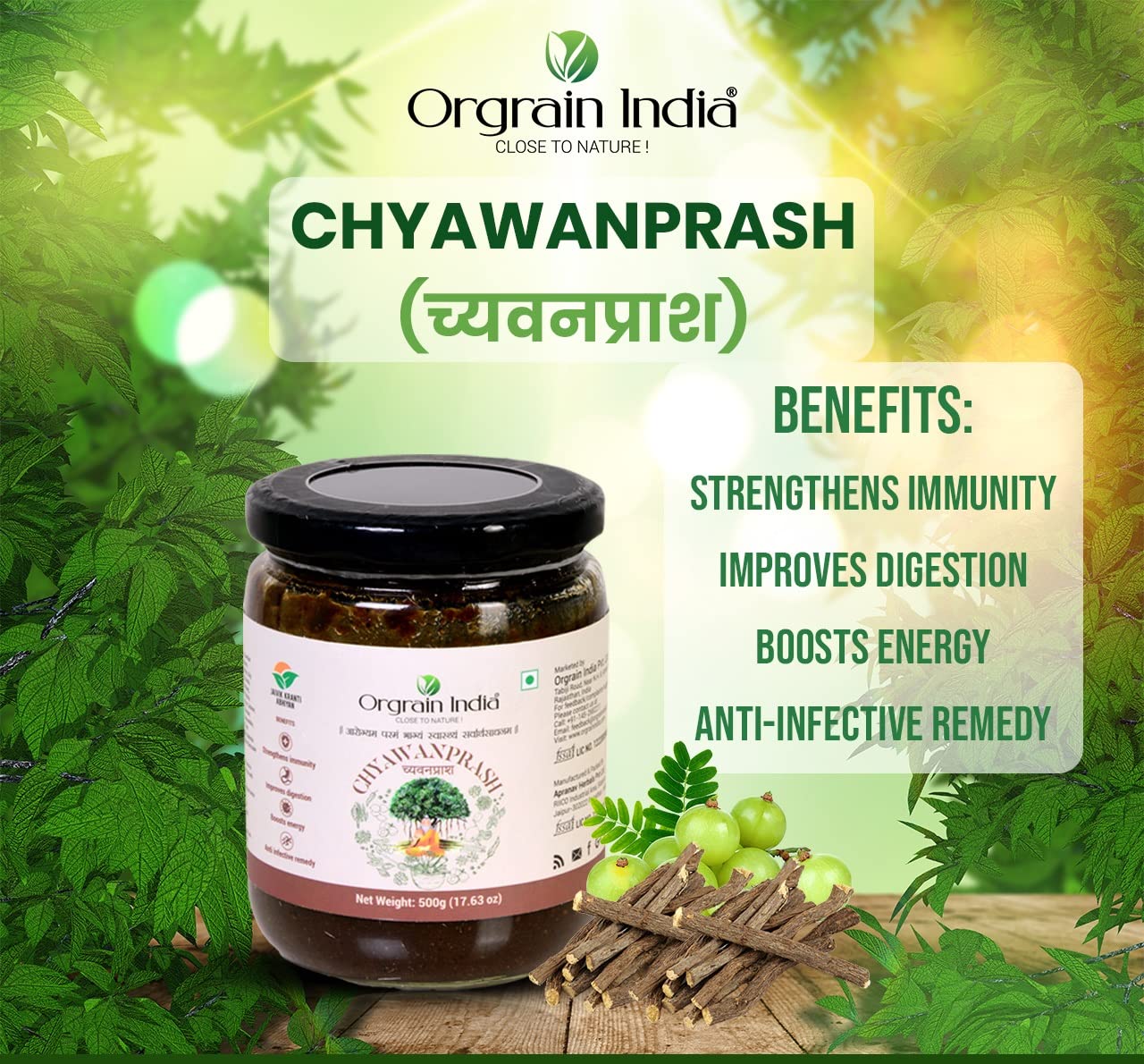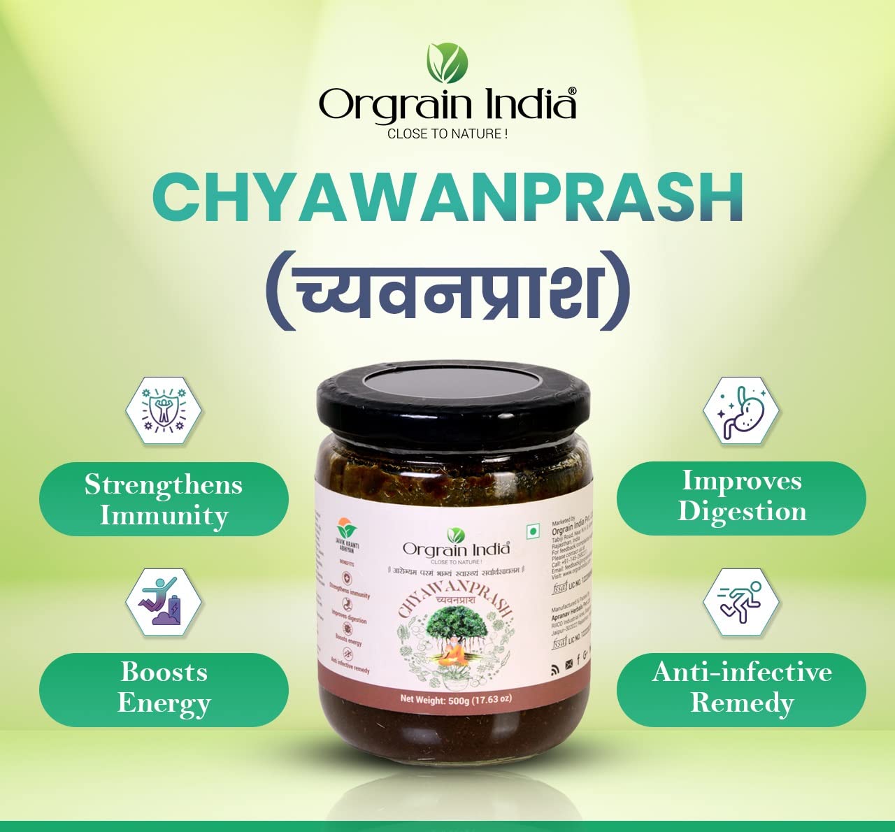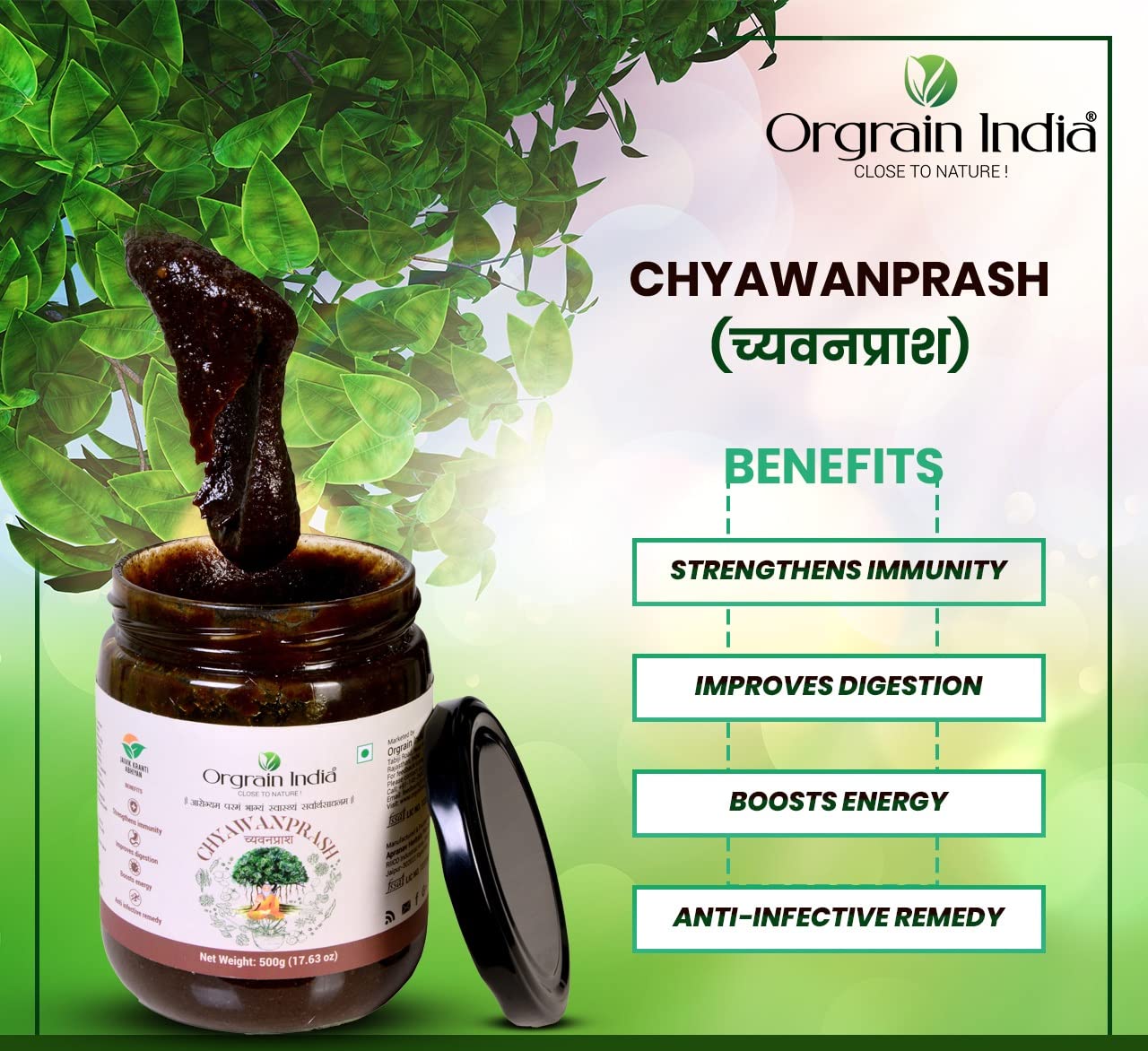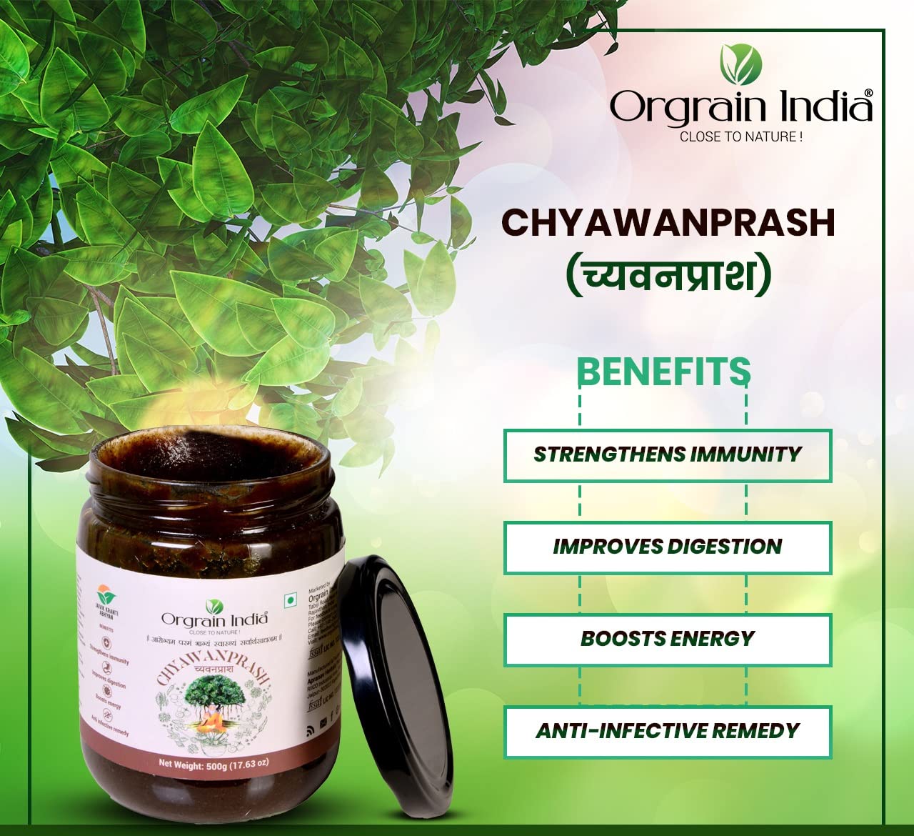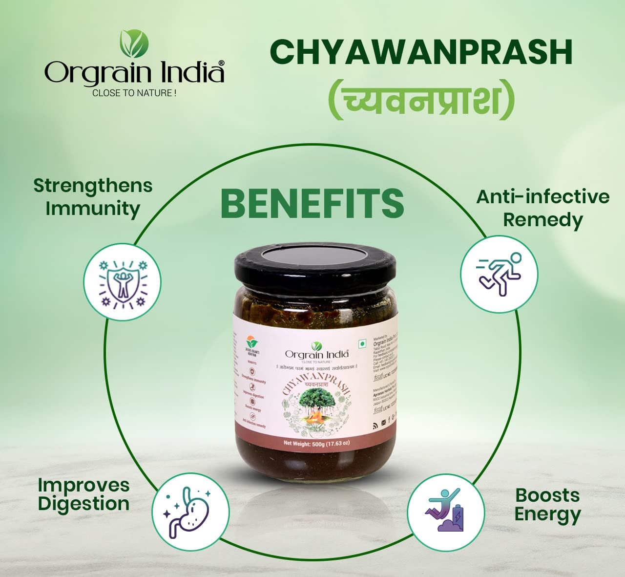 ARRAY OF HEALTH BENEFITS WITH CHYAWANPRASH: Traditionally made using the Ayurvedic Charak Samhita process Orgrain India Chyawanprash is created in order to address a multitude of health concerns. It is an Ayurvedic boon for many! From boosting immunity to