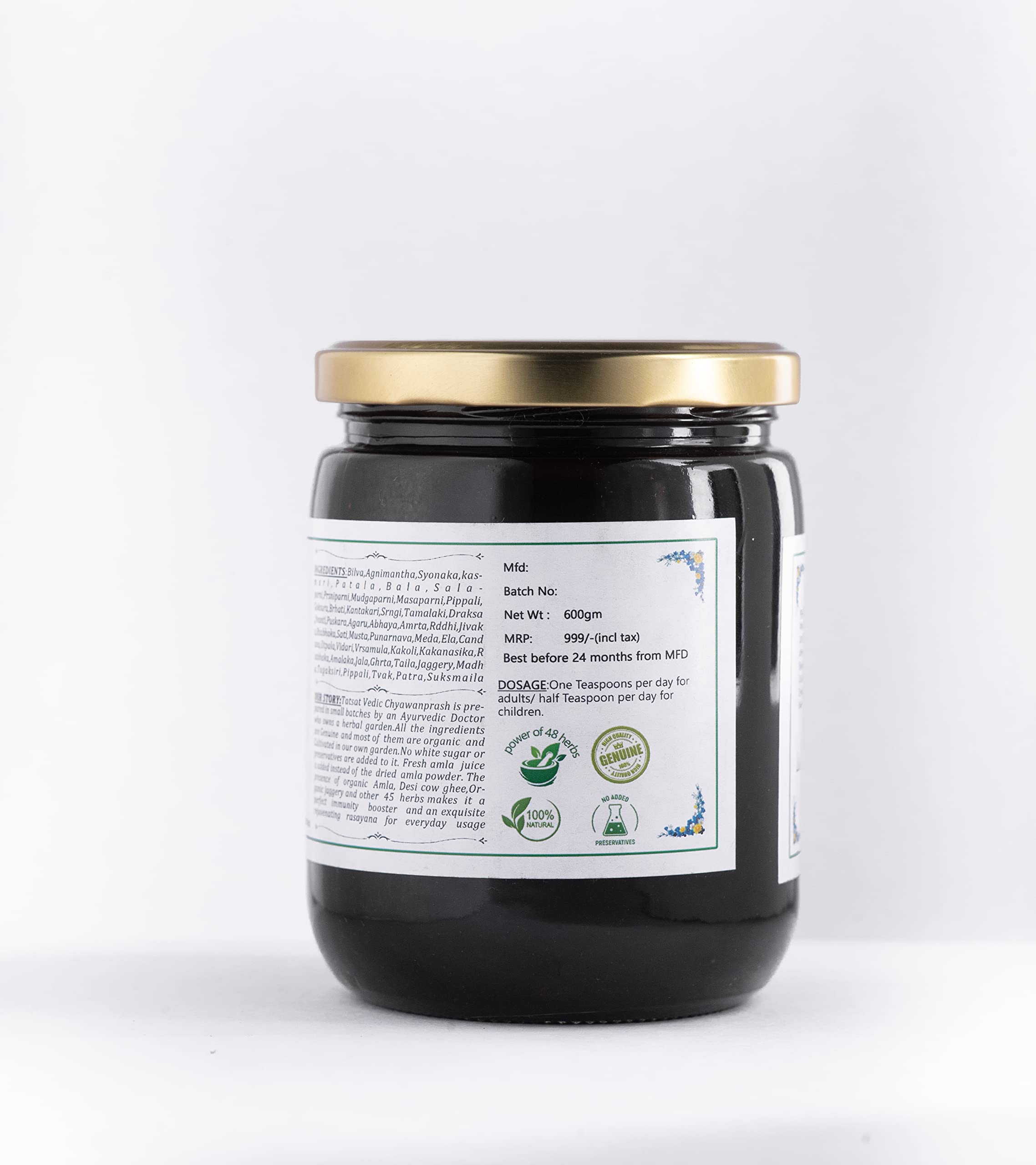 TATSAT - WELLNESS THROUGH AYURVEDA Vedic Chyawanaprash With A2 Cow'S GheeWild Honey Organic Wild Amla Jaggery And Other Genuine 45 Herbs -600Gm|Free From White Sugar Immunity Booster |
