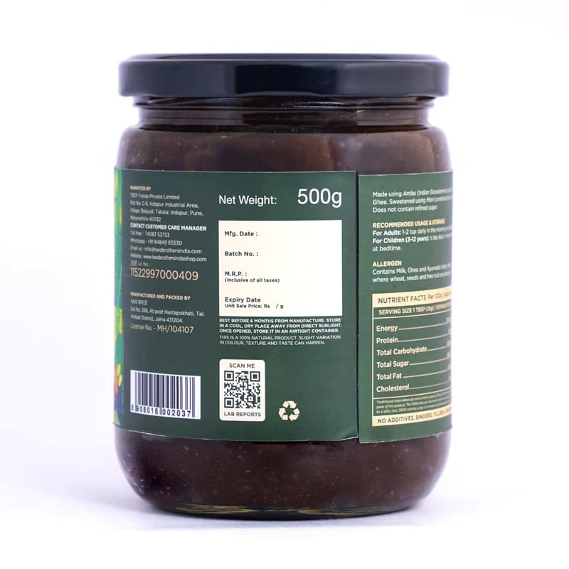 USP Made using Amlas (Indian Goose) and A2 Gir Cow Ghee. Sweetened using Misri (unrefined Rock Sugar). Does not contain refined sugar. Description A jam like mix consisting of native ingredients. This product contains no additives is free from artificial synthetic fillers or binders. 100% natural.