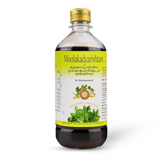 AVP Moolakadyarishtam is an ayurvedic herbal formulation effective in treating various skin diseases and digestive issues in children. This polyherbal preparation contains a carefully selected blend of over 13 ingredients including Moolaka Haritaki Vibhitaka Amalaki and Pippali that work together to purify blood and strengthen the digestive system. Regular intake helps clear toxins from deeper tissues leaving the skin clear and healthy. It also soothes irritation cools inflammation and aids in wound healing. For digestive problems it improves appetite prevents constipation and reduces abdominal pain acidity gas and indigestion in young ones. The 450ml bottle provides over a month's supply of this easy to consume herbal medicine that is safe for long-term use.