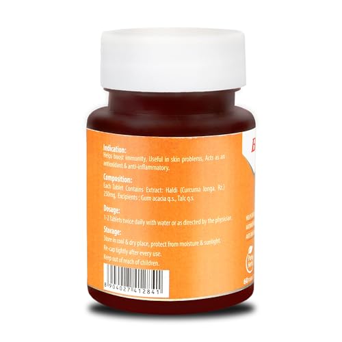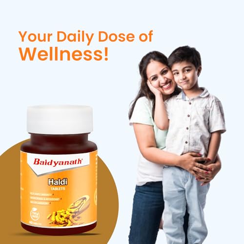 Discover the power of nature with Baidyanath Turmeric Tablets enriched with pure and natural Haldi (Turmeric) extract. Unlock a world of health benefits as you embark on a journey towards improved immunity clearer skin enhanced digestion and overall wellness. These tablets help fortify your immune system making it more robust in the face of various infections and illnesses. Turmeric is known for its ability to cleanse the blood promoting better circulation and detoxification. Regular use of these tablets can contribute to a healthier circulatory system. Experience the beauty benefits of turmeric as it helps combat skin problems. Its properties may soothe skin irritations promote a healthy complexion and provide a natural glow. Turmeric has been used for centuries to aid digestion. These tablets can help strengthen your digestive system alleviate discomfort and promote overall gut health. Baidyanath is a trusted name in Ayurvedic wellness. Our Turmeric Tablets are made with the highest quality standards ensuring purity and effectiveness. These convenient tablets are easy to incorporate into your daily routine. No need to worry about the bitter taste of raw turmeric. Simply swallow with water or your favorite beverage. Enhance your well-being with Baidyanath Turmeric Tablets. Harness the power of natural Haldi extract to boost your immunity purify your blood address skin concerns and support your digestion. Elevate your health with the time-tested wisdom of Ayurveda. Start your journey to a healthier you today!