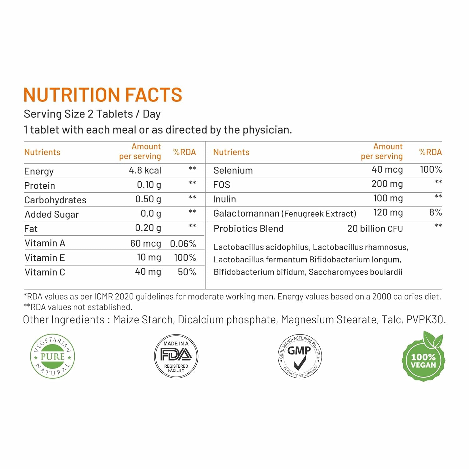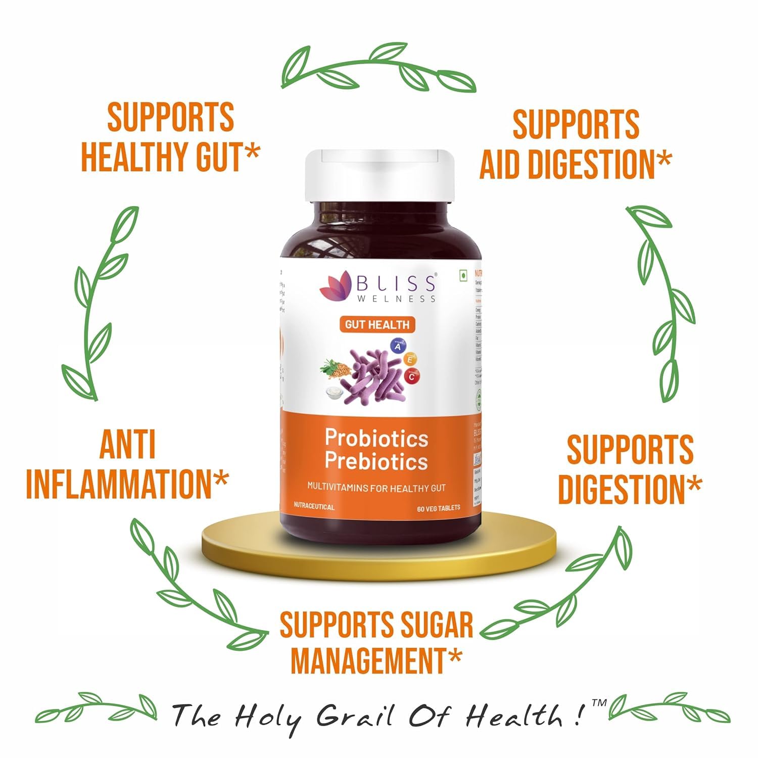 Bliss Welness Prebiotics and Probiotic Supplements 20 Billion CFU Digestive Enzymes With Galactomannan 120 mg | Improve Digestion Immunity & Gut Health For Men and Women - 60 Tablets