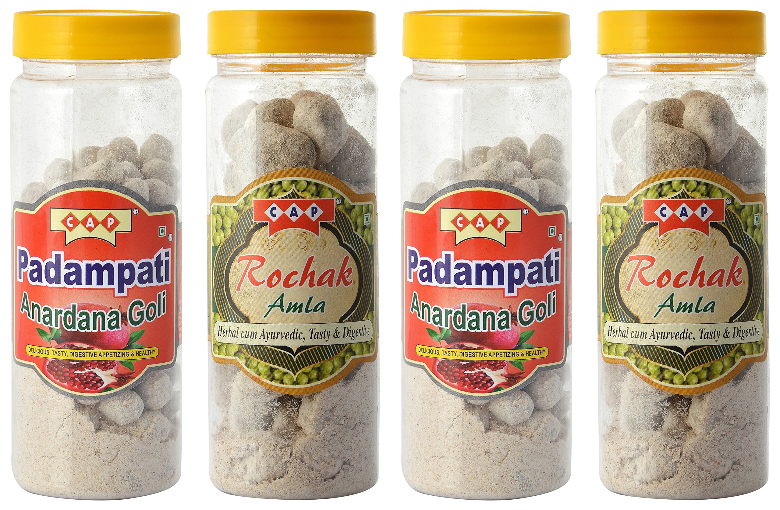 c a p Anardana Goli & Rochak Amla Masala Candy Chatpati Tasty Pachak Digestive Combo - 190 Gms (Pack of 4)