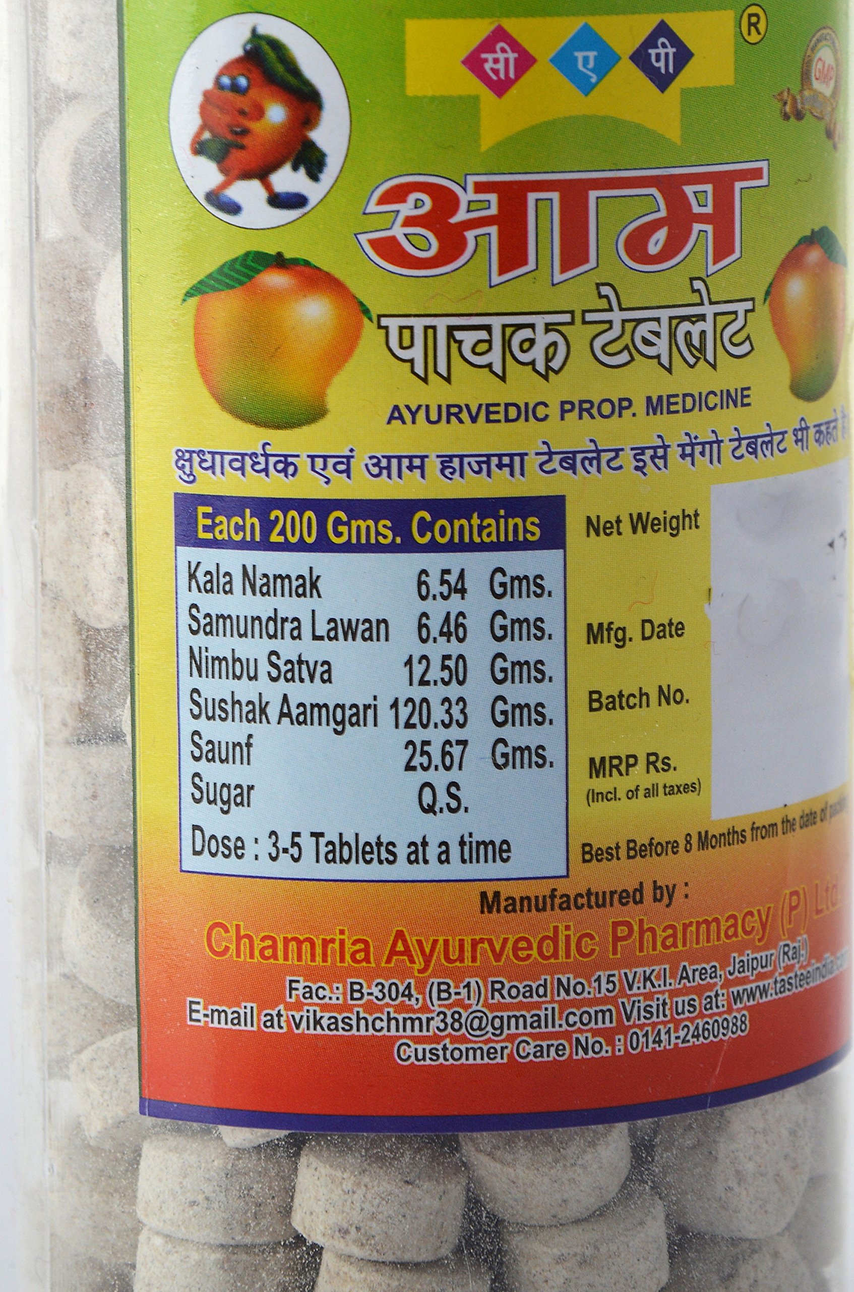 Ingredients: Aanar Dana Kali Mirchi Namak Kala Namak Amalved Pipal Dalchini Sugar Gulkand Jeera Saunf Nibusatt Green Saunf Black Salt Amra Phalak Salt Nibu Satt Sugar.
