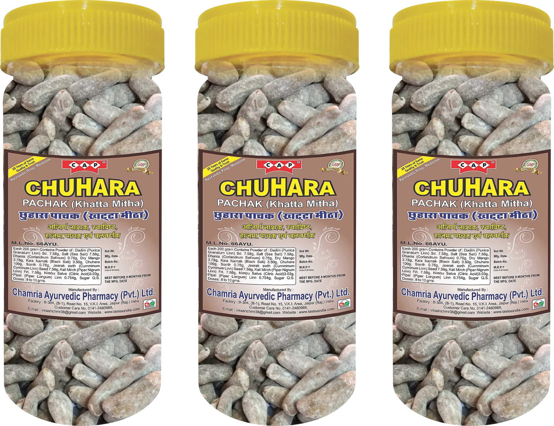 CAP Chuhara Pachak Khatta Mitha Coated Anardana Churan Tasty Healthy Khajoor -120 Gms Each (Pack of 3)