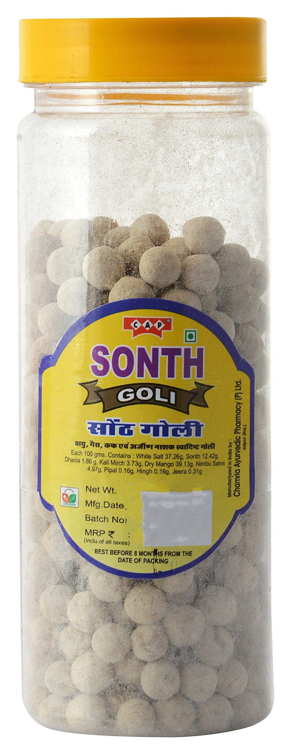 Ingredients: Sudh Hing Kali Mirch Pipal Safed Namak Kala Namak Amraphalak Jeera Gulkand Dhaniya Nibusatt Anardana Sugar Salt Sonth Kali Mirch Dhaniya Amchur Nibu Satt Jeera Peepal Hing.