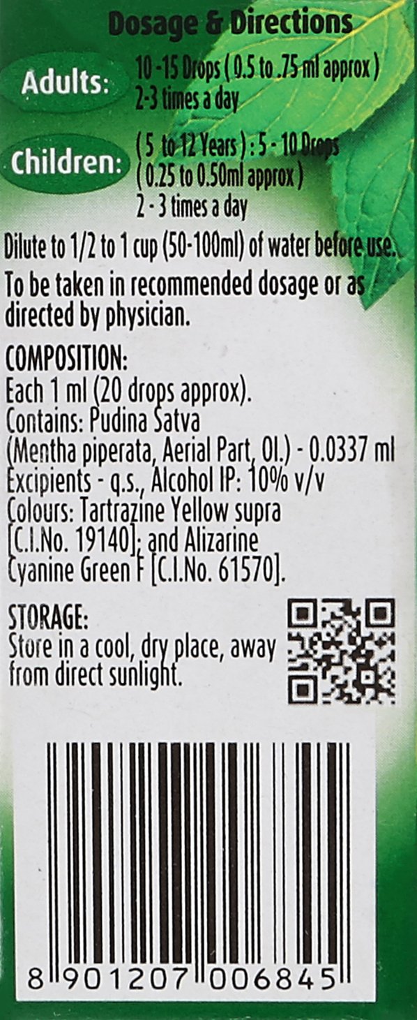 Pudin Hara is a popular herbal remedy used for the relief of digestive issues. It is designed to provide quick and effective relief from various digestive problems such as bloating indigestion flatulence and stomach discomfort. This is made from natural ingredients including mentha arvensis (pudina) and peppermint oil which have been traditionally used for their carminative and digestive properties. This is suitable for adults and can be taken as needed to alleviate digestive symptoms. Overall Pudin Hara solution is a convenient and effective option for those looking for natural relief from digestive problems.
