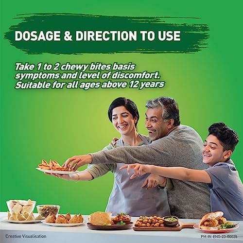 Anywhere Anytime & Anyone : ENO Chewy Bites comes in a conveninet chewable format. Chew 1 to 2 tabs basis symptoms & level of discomfort anytime & anywhere. It is suitable for 12 years and above