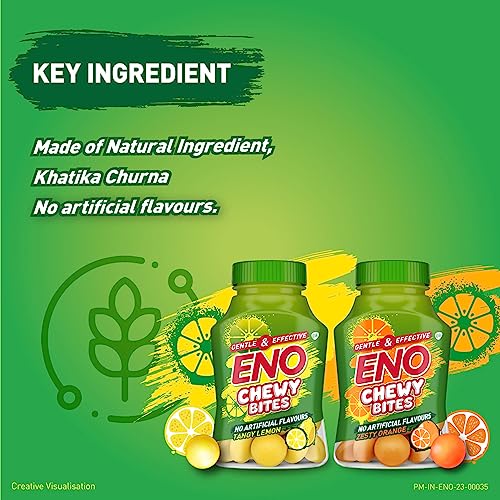 Gentle on the stomach: ENO Chewy Bites is gentle on the stomach. Active ingredient of ENO Chewy Bites is sourced from nature. It has no artificial flavour