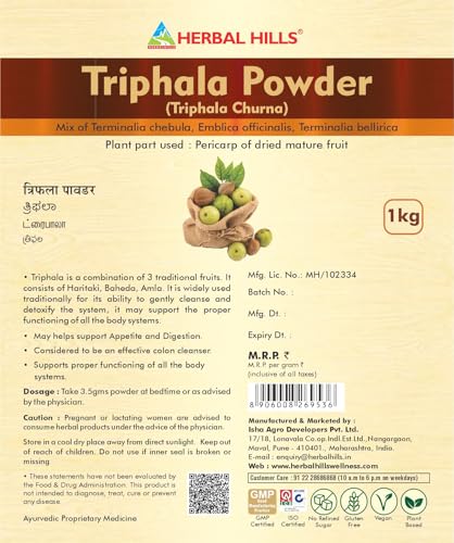 Herbal Hills is a leading Manufacturer Supplier & Wholesaler in India of Ayurvedic product Triphala Churna. Triphala churna is a blend of Amla Baheda Harde which is synergistically processed with highly advanced technology at Herbalhills. Our products are made out of best quality and authentic Ayurvedic herbs available in India which are specially selected and manually graded to give best results. Herbalhills Triphala churna may support the deigestive function improve the metabolism and act as a colon cleanser. Our Triphala churna is an Ayurvedic formulation of 3 herbs such as Amla Baheda & Harde. They have antioxidant antiviral deigestive laxative & amazing healing properties. The blend of the 3 herbs balance the tridoshas (Vata Pitta Kapha).