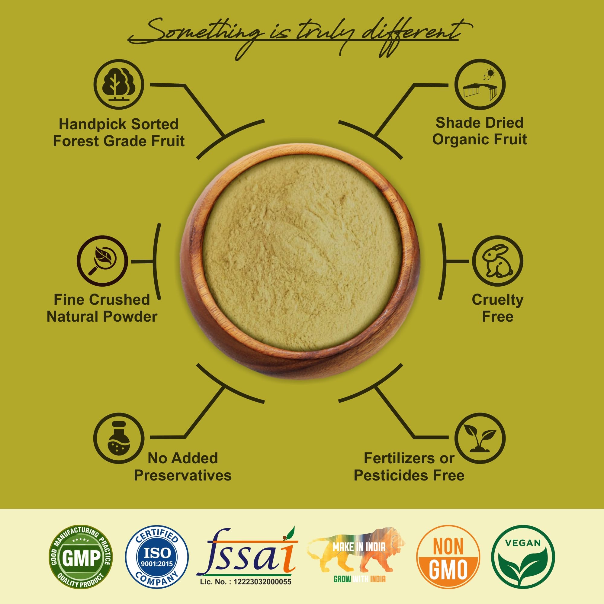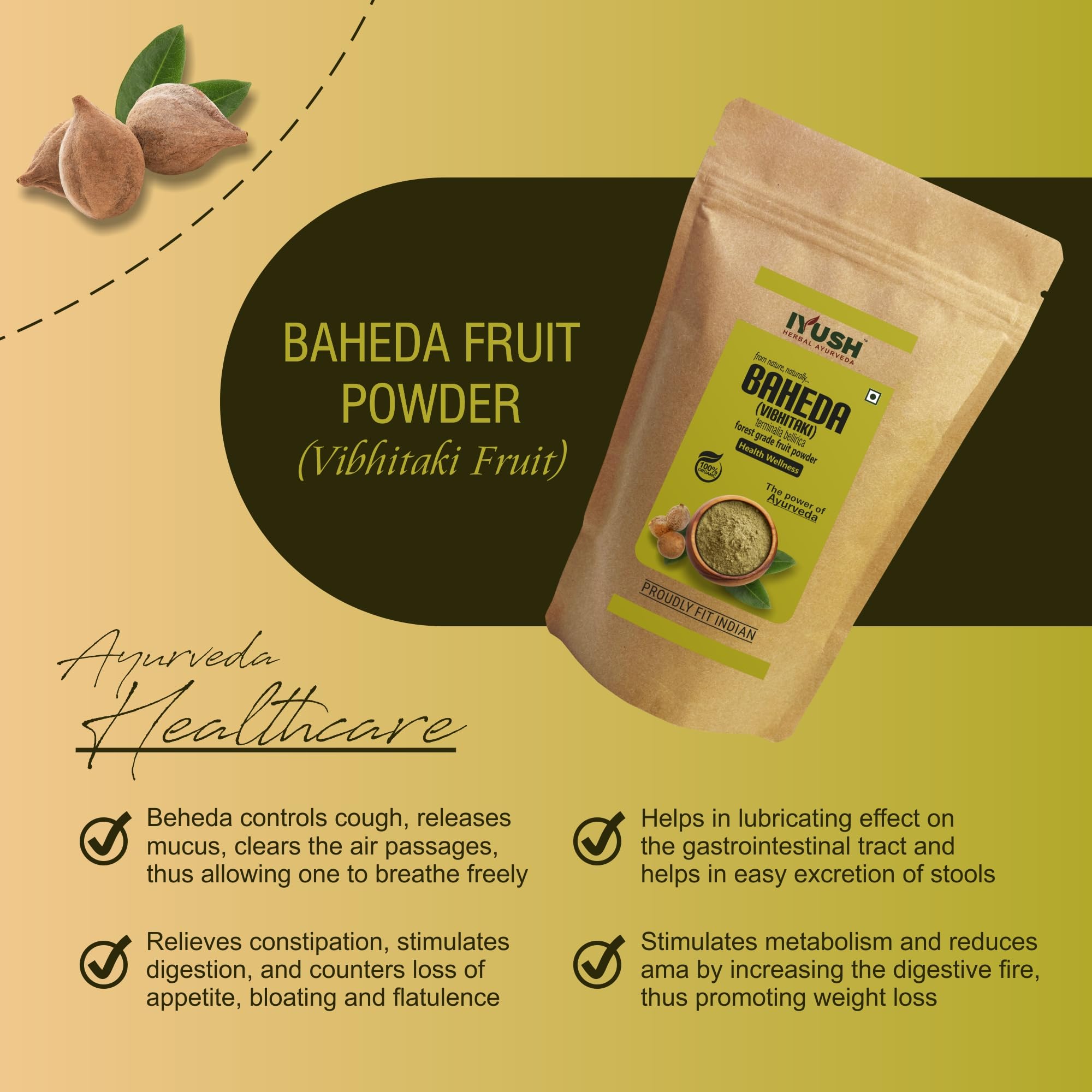 Baheda also known as Terminalia bellirica is a natural herb that has been used in Ayurveda for centuries for numerous health benefits. It is an organic healthcare powder made from shade-dried wild forest grade Baheda fruit that contain the highest active nutrients grown naturally without any harmful chemicals or pesticides or fertilizers.
