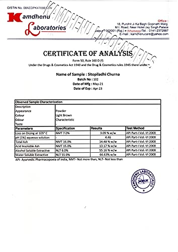 Kamdhenu Laboratories Sitopiladhi Churna -250 g