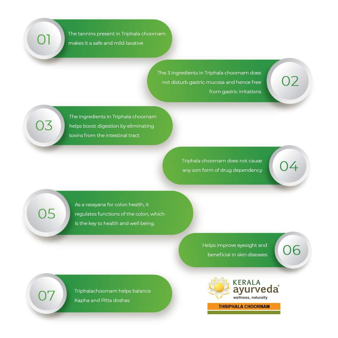 POLYHERBAL DIGESTIVE REMEDY: Digestive Remedy: Traditional remedy to help address common gut concerns Triphala choornam functions as a natural herbal laxative to help ease constipation and gas to further support a healthy digestive system