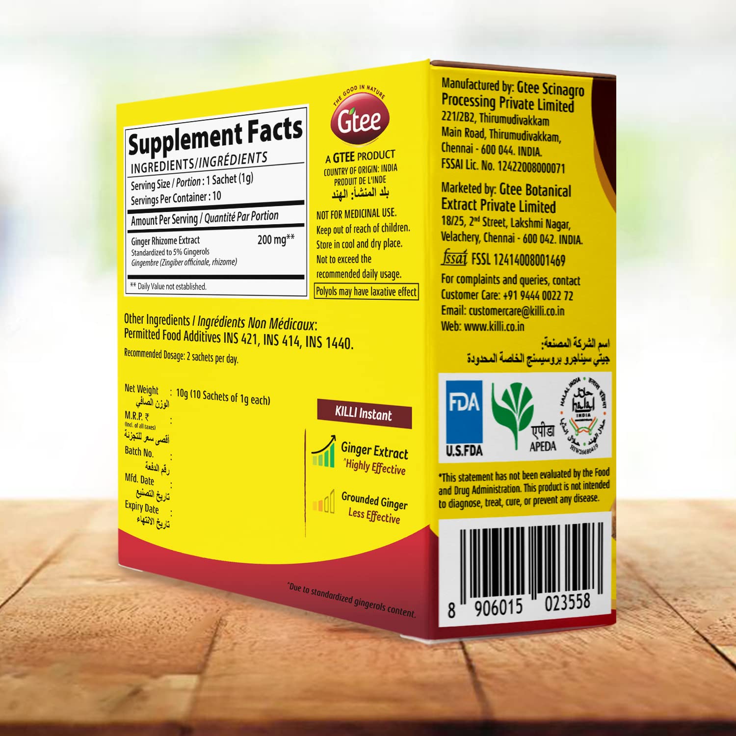KILLI Ginger Instant Ayurvedic Extract 20 Sachets for Digestion