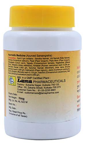 Lama Lawan Bhaskar Churna formulated from a 100 percent natural blend of ingredients is effective in treating various stomach related disorders such as loss of appetite constipation dyspepsia indigestion clolic & stomach troubles. This churna is a mix of various salts that cures acidity soothes irritation in the stomach lining that is caused by hyperacidity. It also helps boosts digestion by stimulating enzyme production.