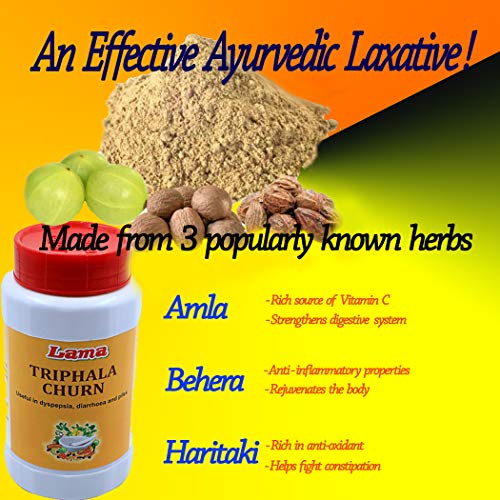 Lama Triphala Churn a classical Ayurvedic product from Lama Pharmaceuticals a trusted name in Ayurveda since 1982. Ingredinet: Amlaki (Embellica officinalis) Bibhitaka (Terminalia bellerica) Haritaki (Terminalia chebula).