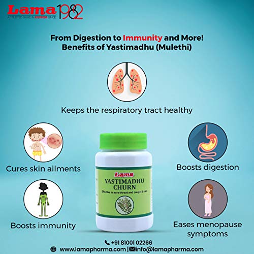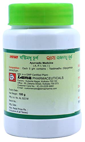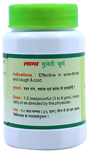 Lama Yastimadhu Churna a hightly effective classical Ayurvedic product from Lama Pharmaceuticals. Effective in sore-throat and cough & cold. Ingredient: Shatawari (Glycyrrhiza glabra).