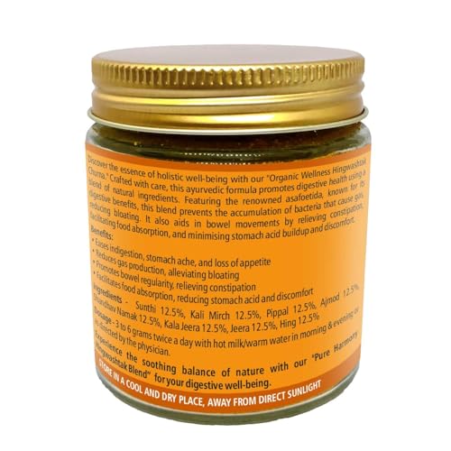 Organic Wellness Hingwashtak Churna an effective gastric stimulant and digestive remedy | Helps in loss of appetite indigestion flatulence Stomach-ache and loss of taste. Hingwashtak Churna is primarily used to support digestive health and alleviate gastrointestinal issues