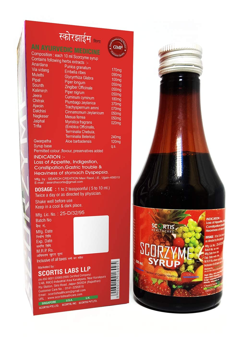 SCORTIS HEALTHCARE Scorzyme Syrup - 200 ml x 4 Ayurvedic Medicine For Indigestion Constipation Gas Loss of Appetite|Effective Relief From Constipation| Helps Improve Digestive Immunity