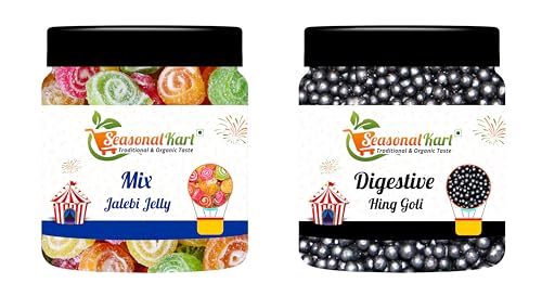 SEASONAL KART Combo Mix Jalebi Jelly & Digestive Hing Goli I Sweet & Sour I tangy I Chatpati mini Goli I Assorted bittersweet (200 Grams Each | Total 400 Grams)