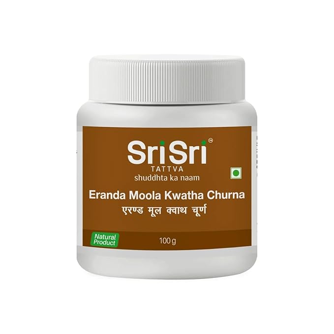 Erandamoola Kwatha Churna is a 100% natural herbal supplement by Sriveda Sattva Pvt Ltd., designed to support healthy digestion and absorption of nutrients. This powder formulation is made with a concentrated blend of seven ayurvedic herbs, including eranda moola, known for its digestive properties. It is effective in treating diseases of Vata and provides a solution for various digestive problems. The recommended dosage is 1 teaspoon (approx. 2g) mixed with water or as directed by a healthcare professional. This supplement is suitable for adults and comes in a 100-gram bag. Please note that this product is not intended to diagnose, treat, cure, or prevent any disease.