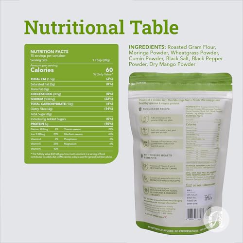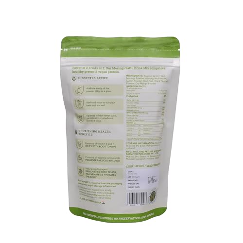 • HOW TO CONSUME: Scoop: Take 1 scoop (20g) of Moringa Sattu Drink Mix and 200 ml water. Stir: the mix to water and stir well. You can choose to filter the mixture. Savour: Enjoy every sip of your delicious sharbat to re-energize yourself every day.
