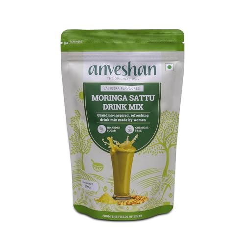 Anveshan Moringa Sattu Drink Mix - 300g | Chana Sattu Protein Powder | Drink | 8 Vitamin and Fibre Rich Nutrition Drink