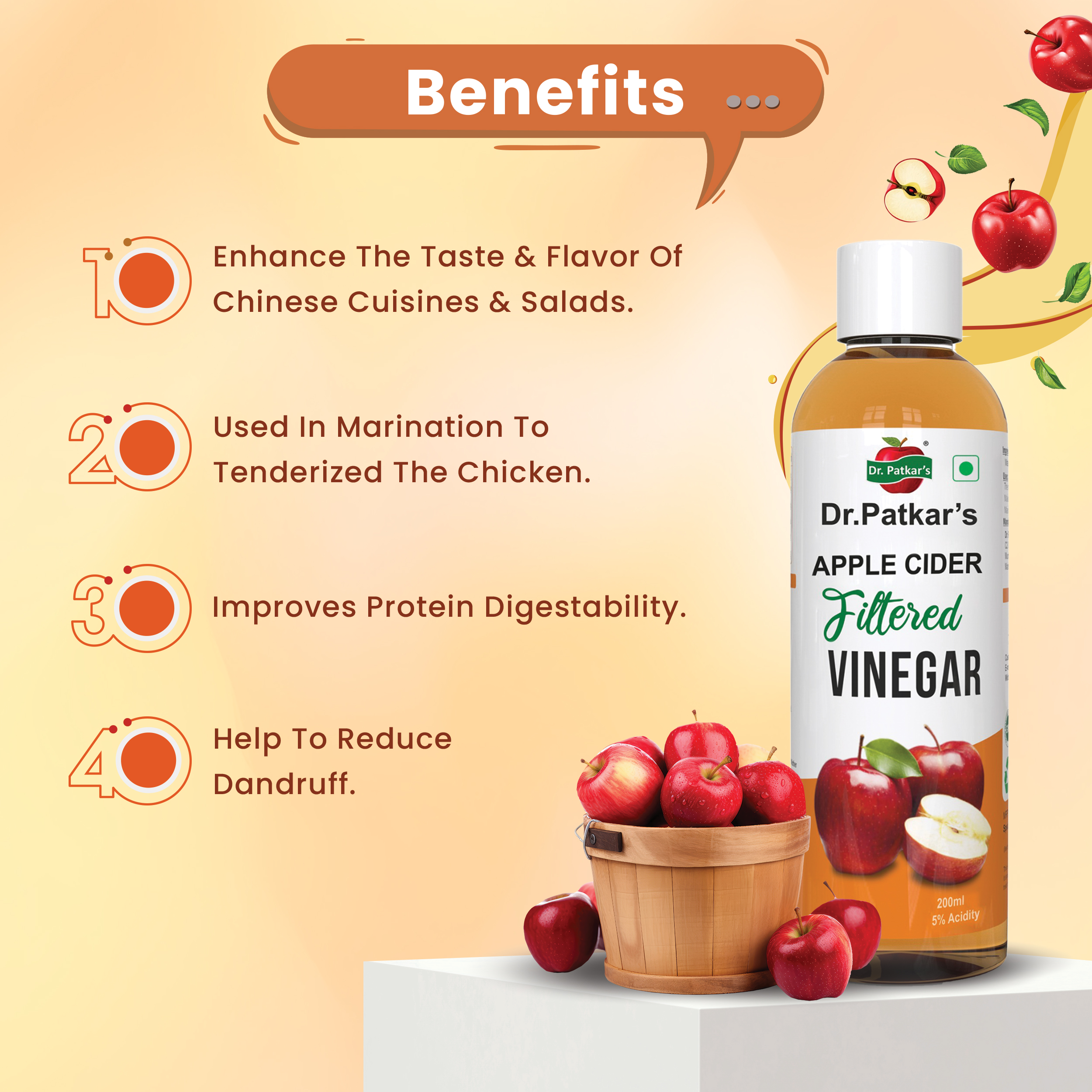 Dr. Patkar's Apple Cider Vinegar 100% Natural Filtered | 5 % Acidity | Immunity Booster| Suitable For Weight-loss | Best For Cooking and Salad Dressing 200 ml