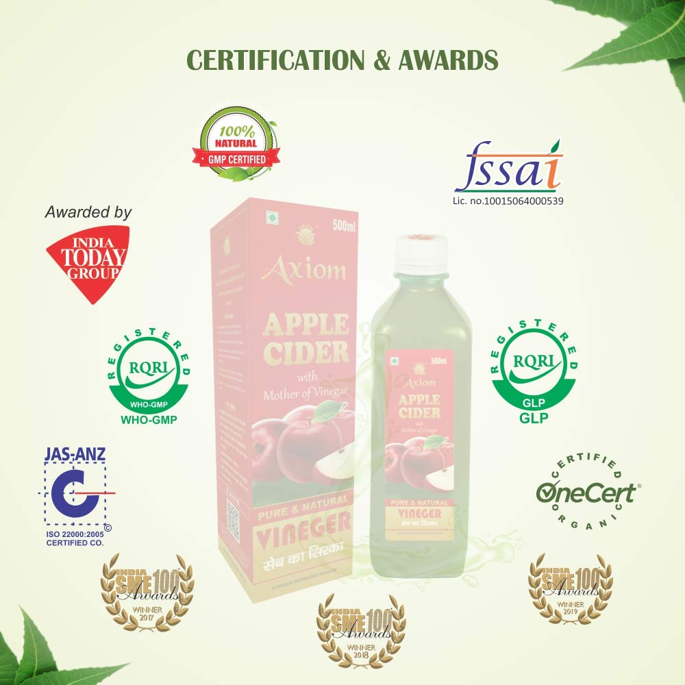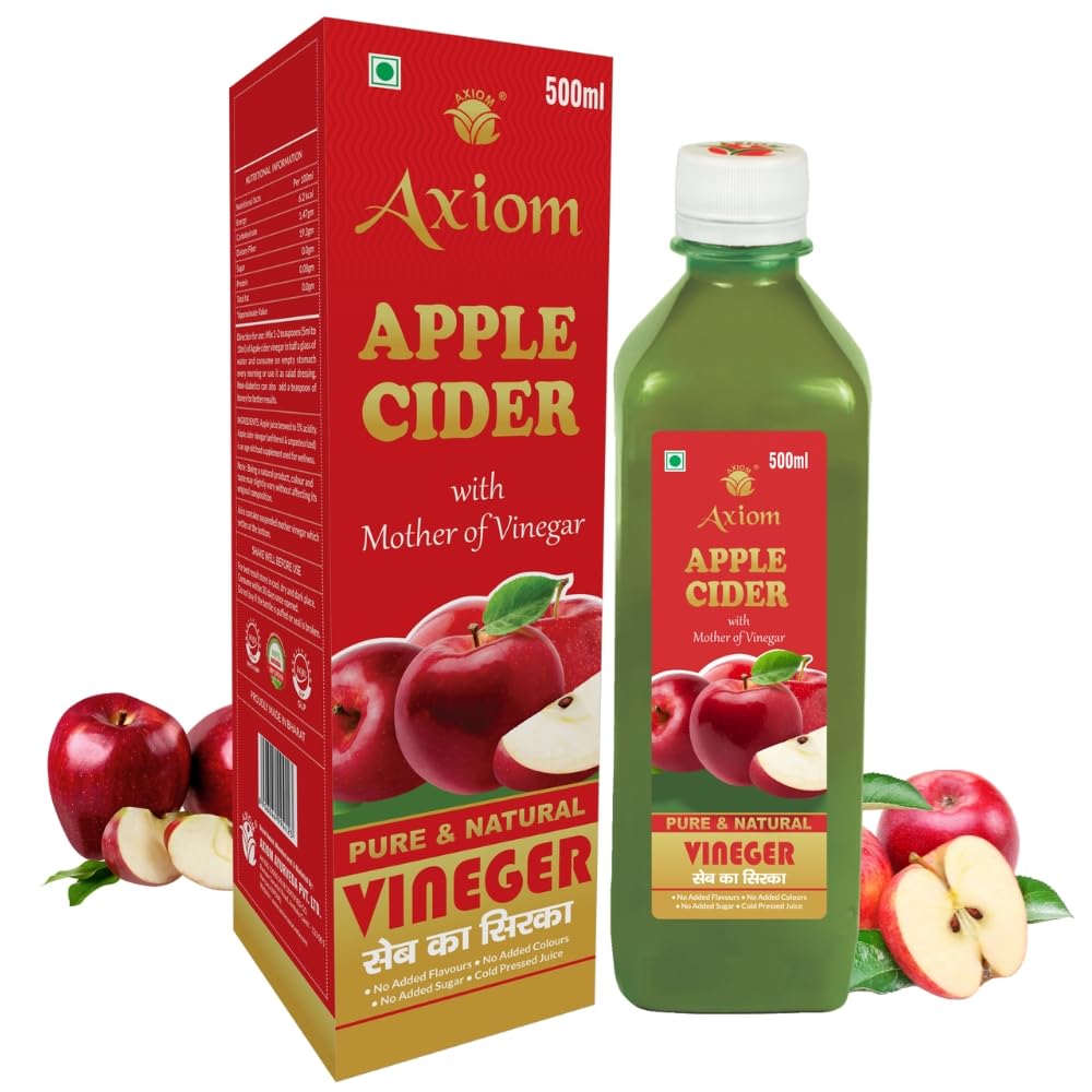 Axiom Apple Cider Vinegar 500ml | Mother of Vinegar with Probiotics | ACV For Weight Management Reduced Bloating Healthy Skin & Hair | Helps in Detoxification | Unfiltered & Unpasteurized