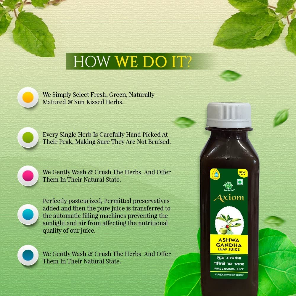 Axiom Ashavgandha Leaf Juice | Immunity Booster | Get Slim | WHO GMP GLP ISO Certified Natural Products | No added Colour |