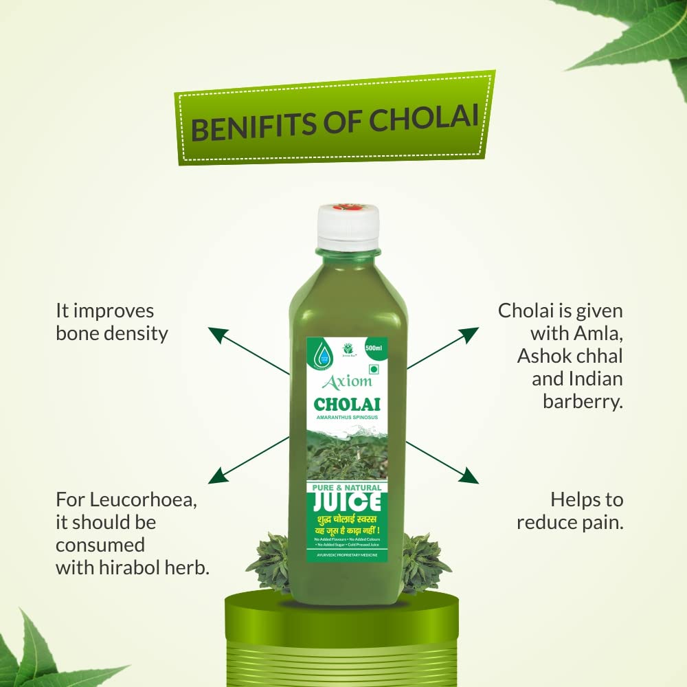 Axiom Cholai Juice 500 ml (Pack of 2) | Helpful for Bleeding & Pain| Enriched with Cholai Herbs | WHO-GLPGMP Certified Product | 100% Ayurvedid & Natural Juice