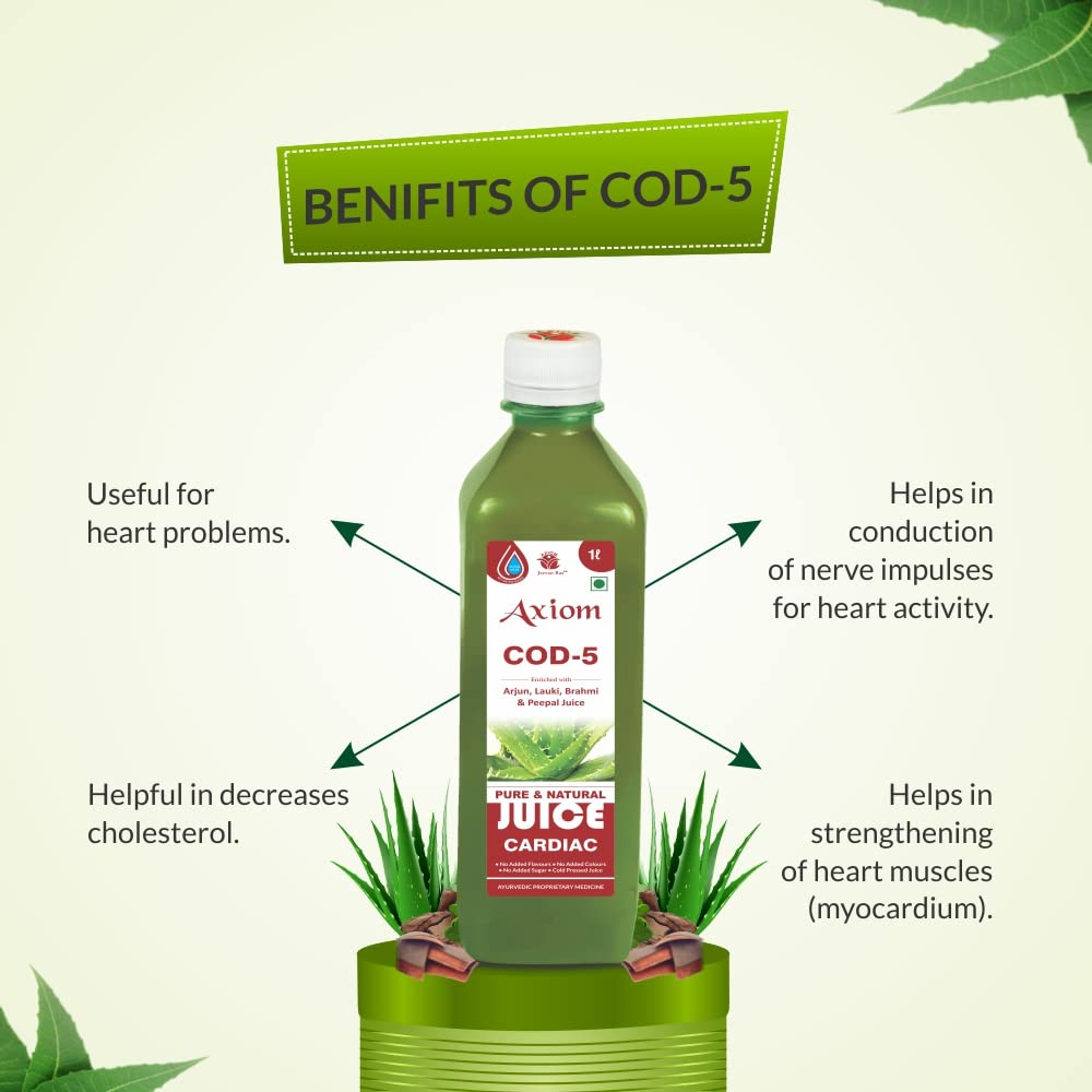 Axiom Jeevan Ras COD-5 Juice | Enriched With Arjun Brahmi & Peepal | Helpful in Heart Problems 1000ml - Pack of 2