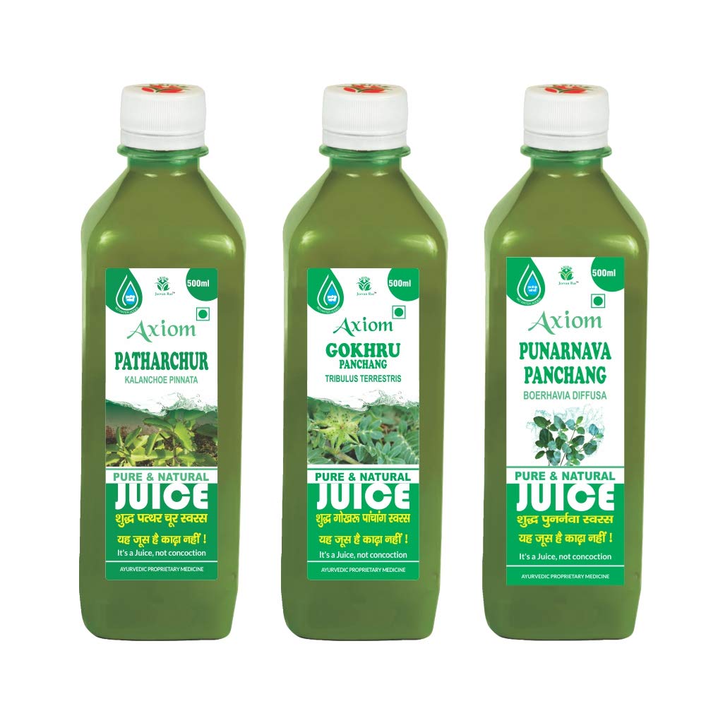 Axiom Stone Go Pack | Punarnava Juice 500 ml + Axiom Patharchur Juice 500 ml + Axiom Gokhru Juice 500 ml | Ayurvedic Juice For Healthy Life | WHO GLP GMP ISO Certified Natural Product