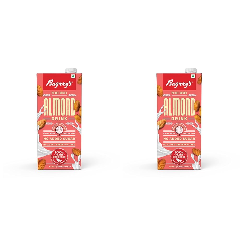 Bagrrys Plant Based Almond Drink, Unsweetned 1l | Vegan | Gluten Free| Dairy free | No Added Sugar| Plant based milk | No Preservatives (Pack of 2)