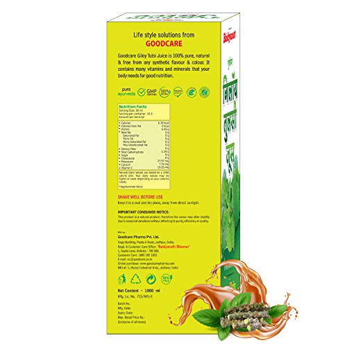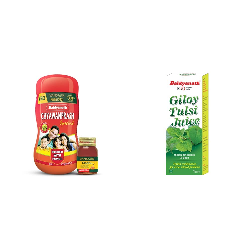 Baidyanath Giloy Tulsi Juice is extracted from fresh Tulsi leaves and Giloy stems. These two herbs individually have great health benefits and together they become more effective in boosting your immunity levels. Tulsi and Giloy are popular and useful Ayurvedic herbs. They have been used in ancient Ayurvedic medicines to combat common infections and allergies. Form - Liquid