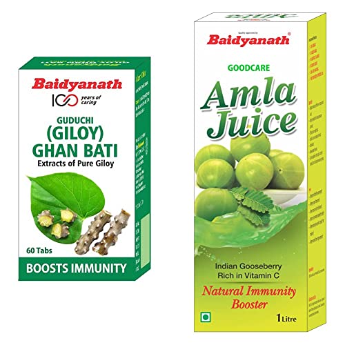 Baidyanath Guduchi (Giloy) Ghan Bati - 60 Tablets (pack of 2) & Baidyanath Amla Juice - Rich in Vitamin C and Natural Immunity Booster - 1L