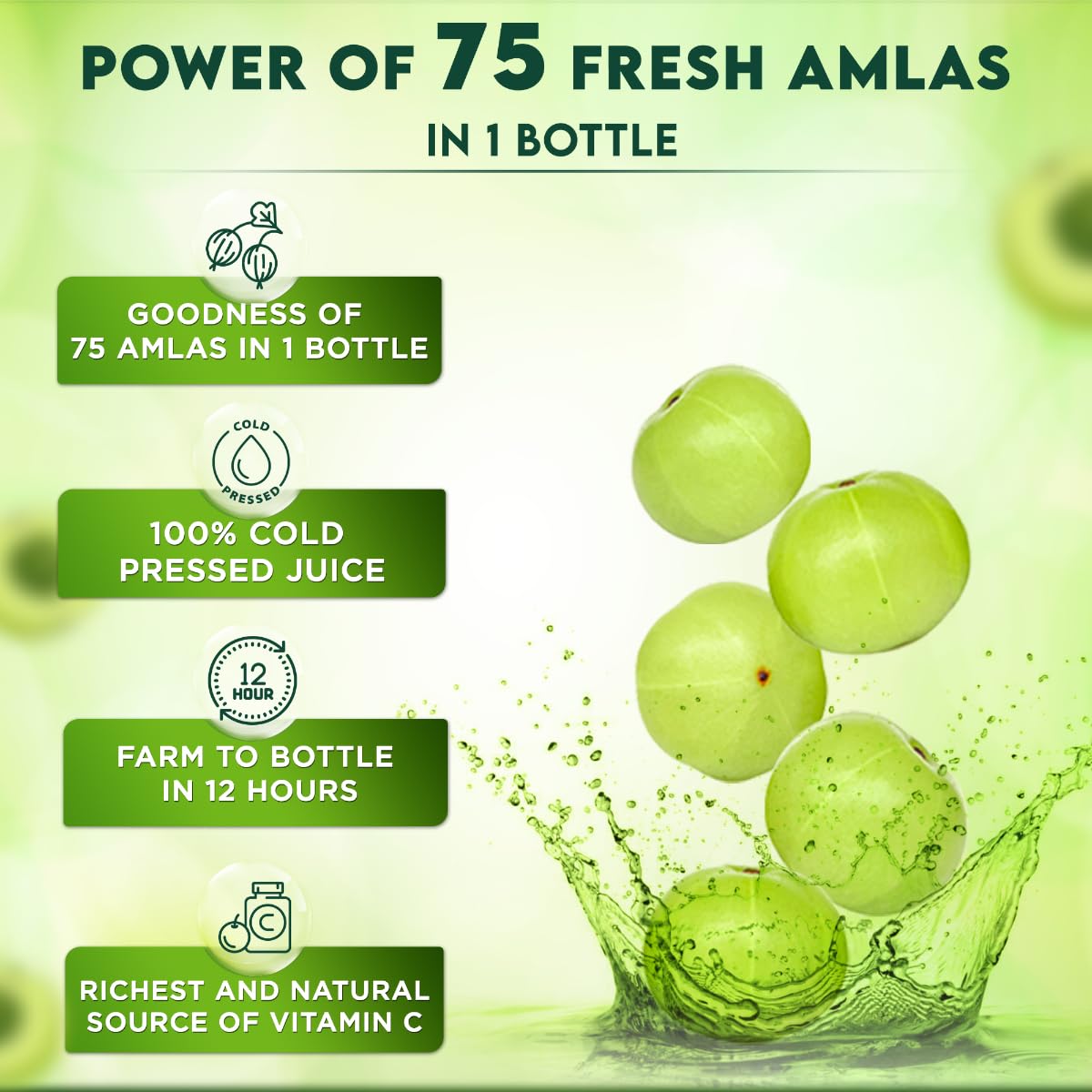 • Product 2: Promotes Healthy Hair Growth: The phytonutrients and minerals present in amla juice help promote hair growth and reduce hair fall by strengthening the hair follicles.