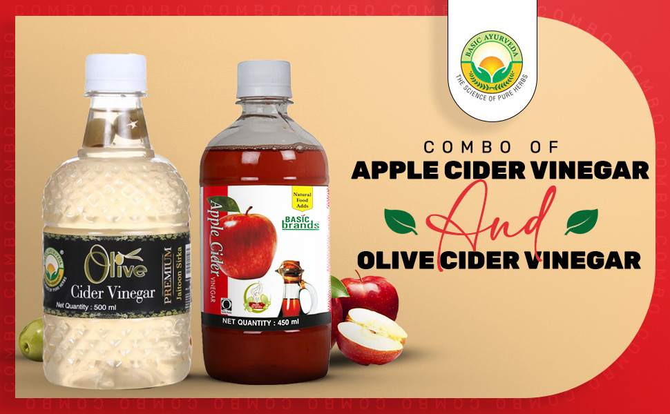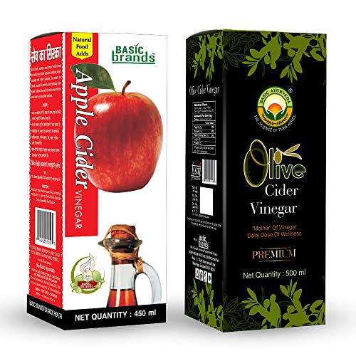 BASIC AYURVEDA Apple Cider Vinegar 450ml With Olive Cider Vinegar 500ml Combo Pack | Sirka With Mother |
