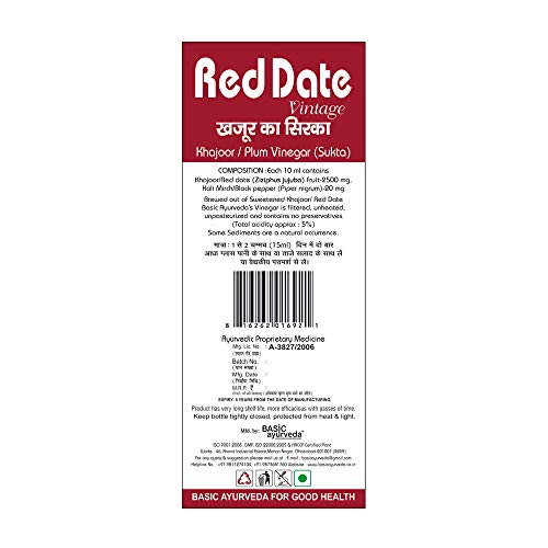BASIC AYURVEDA Red Date Vinegar (Vintage) Lal Khajur Sirka |