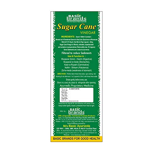 BASIC AYURVEDA Sugar Cane Vinegar With Mother 450ml Pack Of 4 |