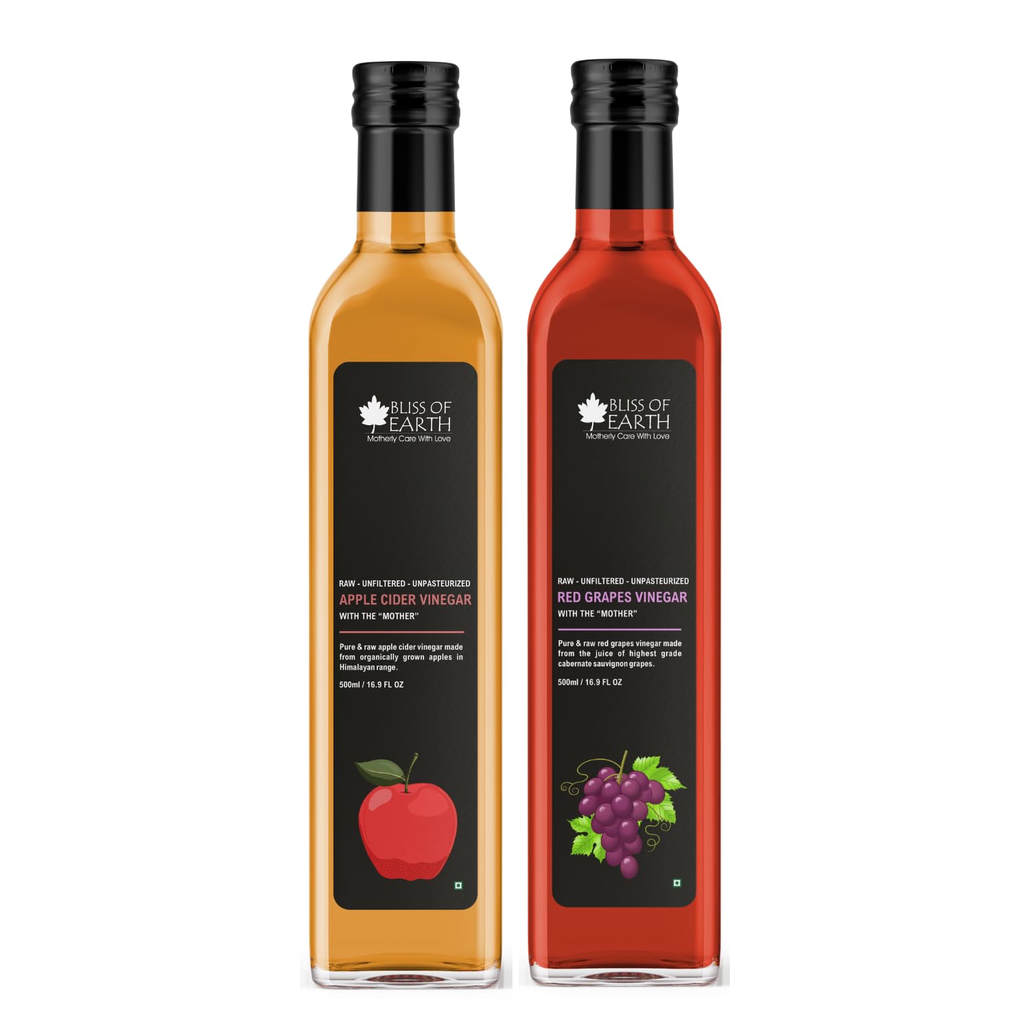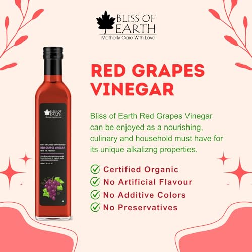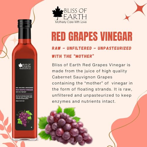 Bliss of Earth Organic Himalayan Apple Cider Vinegar & Red Grapes Vinegar With Mother of Vinegar, Raw, Unfiltered & Unpasteurized, 500ml Each
