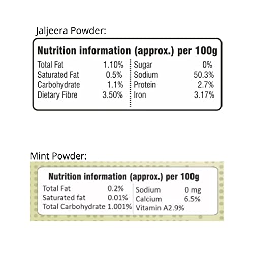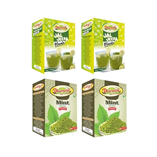 Dharmasut super masala combo includes Jaljeera Masala (50g*Pack of 2) + Mint Powder (50g*Pack of 2). This jaljeera powder packet is used to prepare a cool refreshing drink called jaljeera a salted and spicy Indian lemonade. It has a unique flavor and can be a refreshing choice on a hot summer day. Mint Powder is an aromatic and flavourful condiment that makes dishes beverages all the more appetizing. Dry Mint Powder is good for health as it bolsters smooth digestion. You can enjoy dried mint leaves sprinkled over soups salads chutneys cooked vegetables fresh fruit or yogurt. Experience the real taste of spices and masala with Dharmasut Masala.